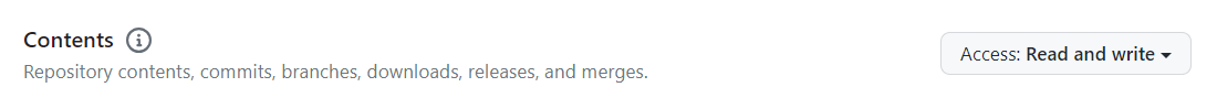 토큰 생성 시에는 Release tag를 수정해야하므로 Content 접근 권한을 Read and write로 해야 함에 주의하도록 하자.