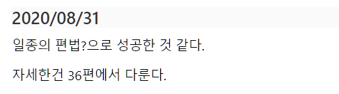 자세한걸 36편에서 다루신다고 하셨는데,,,, 2020년 9월, 34편 포스팅을 마지막으로 포스팅이 중단된 상태. 음... 블로그 좀 쉽게 써보려고 했는데 안되려나 보다. 하하. 방법을 찾기 전까지는 지금처럼 수동 포스팅을 계속 해야할 듯.